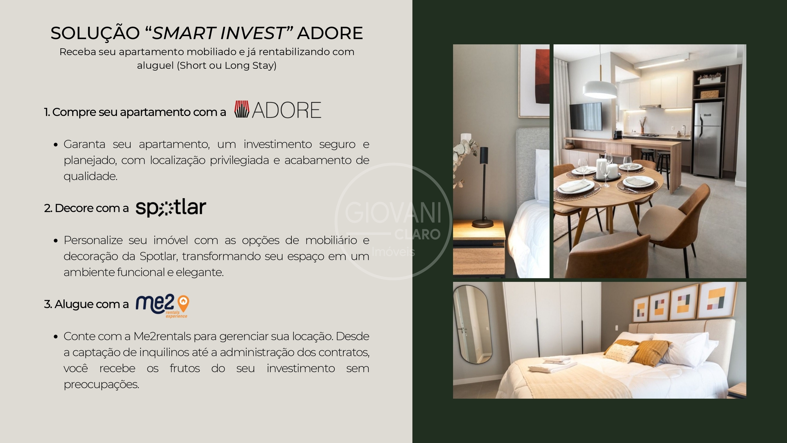 A ADORE oferece uma consultoria completa: você pode receber seu apartamento já mobiliado, equipado e rentabilizando com aluguel (short ou long stay), através de parceiros especializados em decoração e gestão de locação .