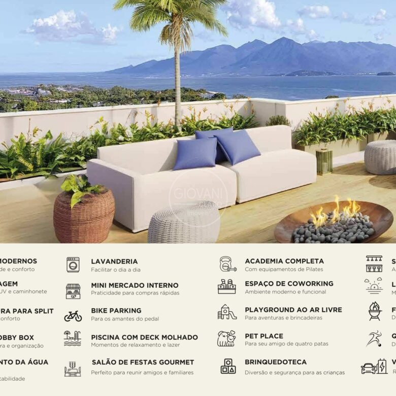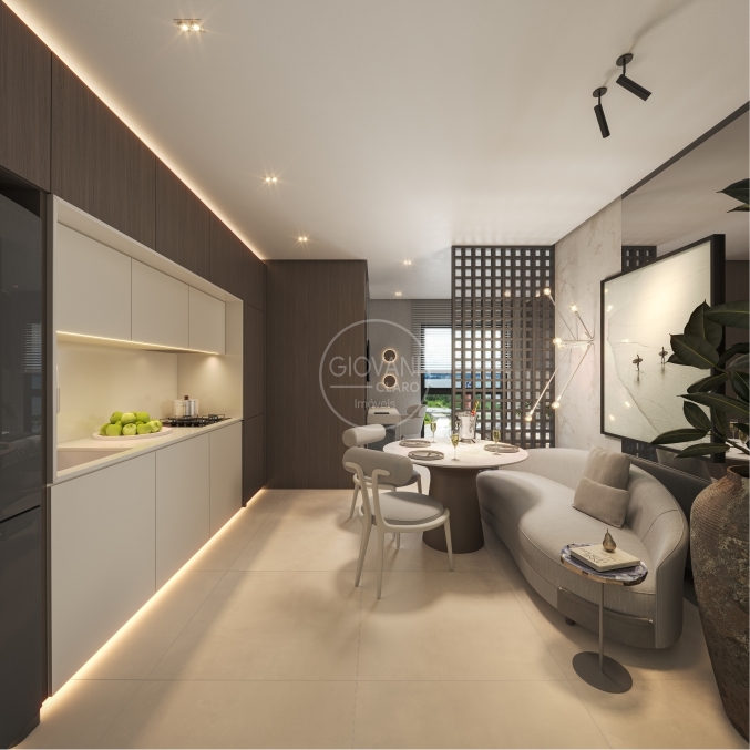Com um total de 66 unidades, o Aura Residence oferece plantas inteligentes de 1, 2 e 3 quartos, com opções de vista para o mar ou para a cidade.
